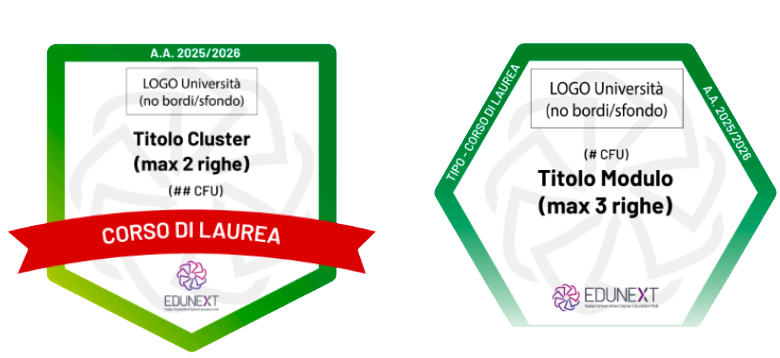 L’erogazione didattica è strutturata in insegnamenti integrati definiti Educational Cluster, composti da 12 a 21 CFU (anche interdisciplinari), suddivisi in moduli da 3 CFU. In pratica, il Cluster corrisponde, negli ordinamenti tradizionali in presenza, all'”insegnamento”, e i moduli al suo interno sono “aggregati” di argomenti volti al raggiungimento di specifiche competenze.